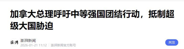 加拿大是美国最亲近的邻国,之前在很多国际事务上都跟着美国走,可这次在达沃斯,加拿大总理马克·卡尼直接公开表态,一点情面都没留。